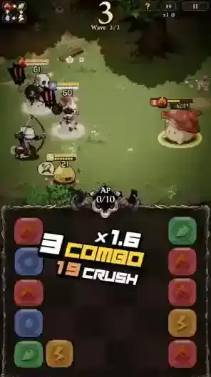游戏中的战斗玩法以消除为主,玩家需要消除各种颜色的方块让角色释放不同的攻击,每一个方块对应一种元素属性。游戏中的伙伴都有不同的属性,消除这些方块就可以让他们进行战斗,消除的数量越多攻击的威力越高,不断消除各种方块来击败出现的魔物吧。