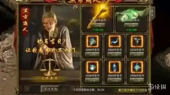 通过黑市商人回收装备,获取传奇币,这些传奇币可用于与战力提升相关的消耗。