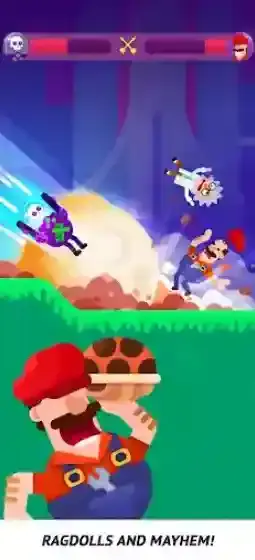 游戏中,我们需要通过拖动屏幕来控制角色投掷的角度和力度,瞄准好敌人进行射击,利用角色独特的武器去击中对手,造成不俗的伤害!不断的去消灭对手来赢下比赛,获得丰富的奖励,解锁更多有意思的角色和模式,体验更加丰富的内容!