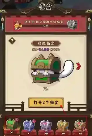 2、通过关卡会掉落各种猫盒宝箱,开启宝箱可以获取各种强力武将,武将也可以通过招募获取哦。
