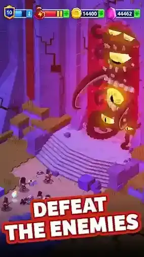玩家们可以通过合成的方式去解锁各种武器,强化英雄的战斗力;也可以对多样丰富的影响进培养,组合出更加强大的战斗力,通过各种方式提升王国整体的实力,去征战更多的区域!