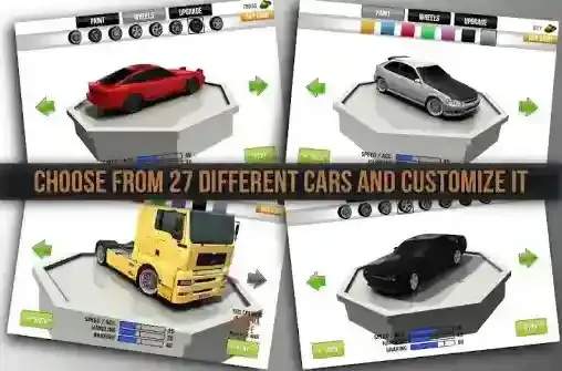 游戏中共提供了五种游戏模式,即可享受休闲的单/双向车道行驶,也可以尝试突破极限的计时赛,还有紧张刺激的警察追逐呢!不仅如此,游戏内还有着丰富多样的炫酷汽车可以解锁驾驶,每一辆都可以自由更换喷漆、轮毂,以及升级提升性能哦!
