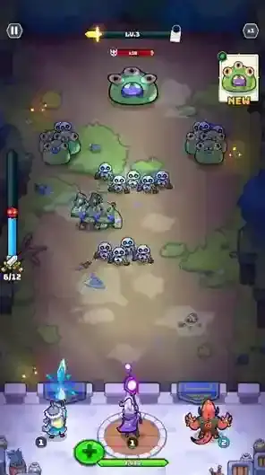 3、消灭怪物会获得经验值,提升等级后玩家可以选择召唤新英雄或者选择一个强化提升英雄的能力。