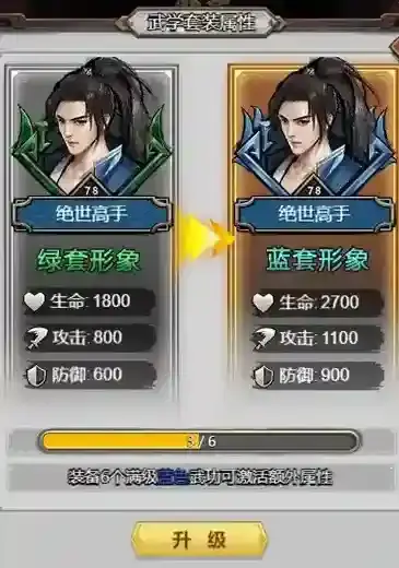 同品质武学全部满级,即可进阶成为武学大师,激活额外属性和全新形象,战力狂飚,君临江湖的时刻即将来临!