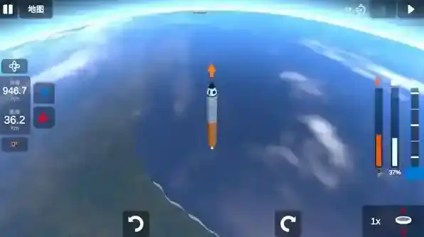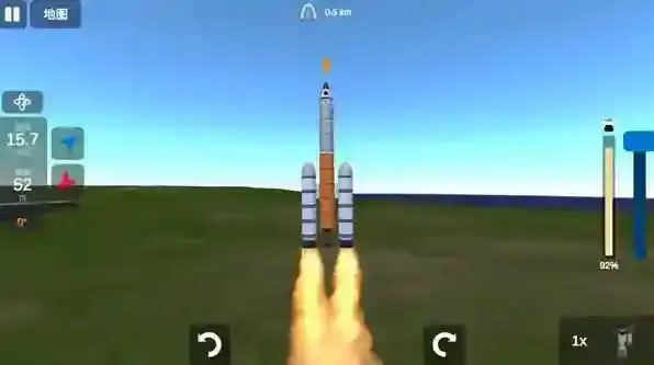 6、正式开始后点击右下角的按钮可以点燃不同的推进器,右边的蓝色按钮是调整推进器的功率大小。