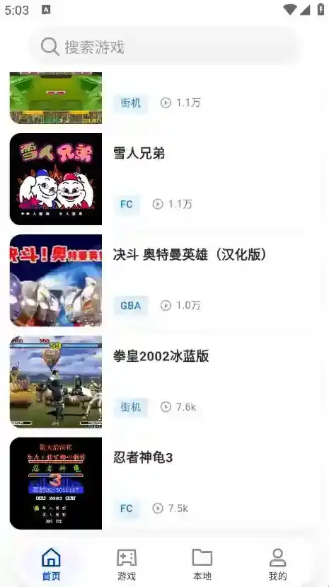 2、来到主页以后,可以看到各种不同分类的街机游戏。