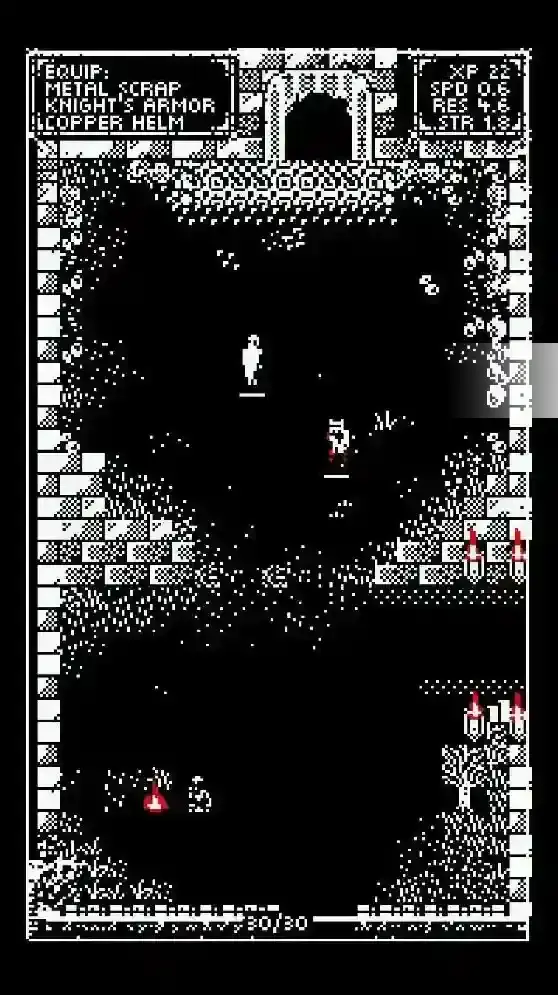 1、黑白像素的的风格会让你体验到不一样的乐趣,各种各样的道具将等你击败敌人后获得。