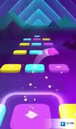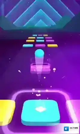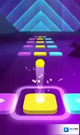 1、进入关卡,小球随音乐节奏前行,点击屏幕让其跳跃到对应颜色瓷砖(黄、紫、蓝等)。