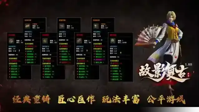 故影复古,180复古三职业经典版本,轻松升级,不肝不氪!上百件特殊装备自由搭配,每一件都有着附加极品属性,并且只能通过打怪获得,玩法丰富多样,绝对能够让你玩得激情爽快!这里不仅玩法内容丰富,而且还有着大量惊喜福利供玩家领取,让大家能够轻松发育,无强制消费,把生态交给玩家,主打一个低消费、大激情!
