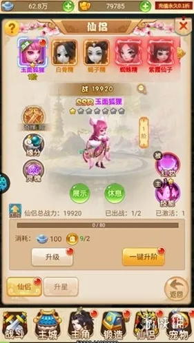 20级后解锁伴侣系统重点培养SSR仙侣,升级升阶后能提供高额战力加成,是前期推图的重要助力。