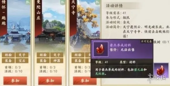 2、完成天宁寺以及挑战天宁寺副本,玩家需要注意开放时间。