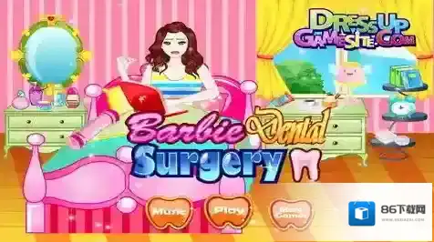 1、点击“Play”进入游戏,面对芭比患者的牙齿问题(蛀牙、污渍等)。