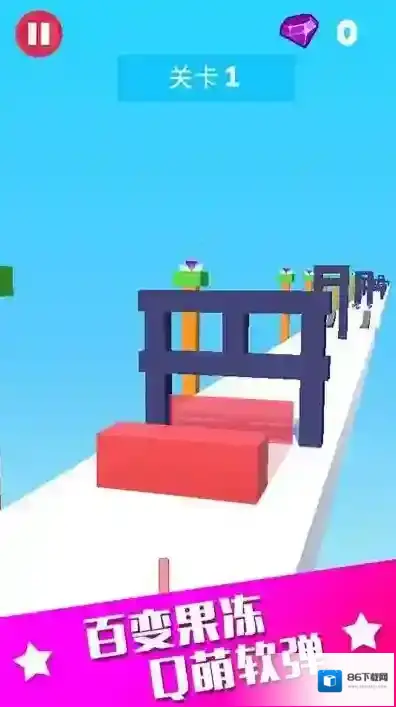 2、滑动屏幕控制移动,避开红色障碍物并收集紫色宝石。
