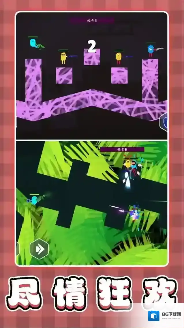 1、萌系视觉体验:采用萌系画风与缤纷色彩,打造愉悦的视觉盛宴,让玩家在轻松氛围中享受多人乱斗的乐趣。
