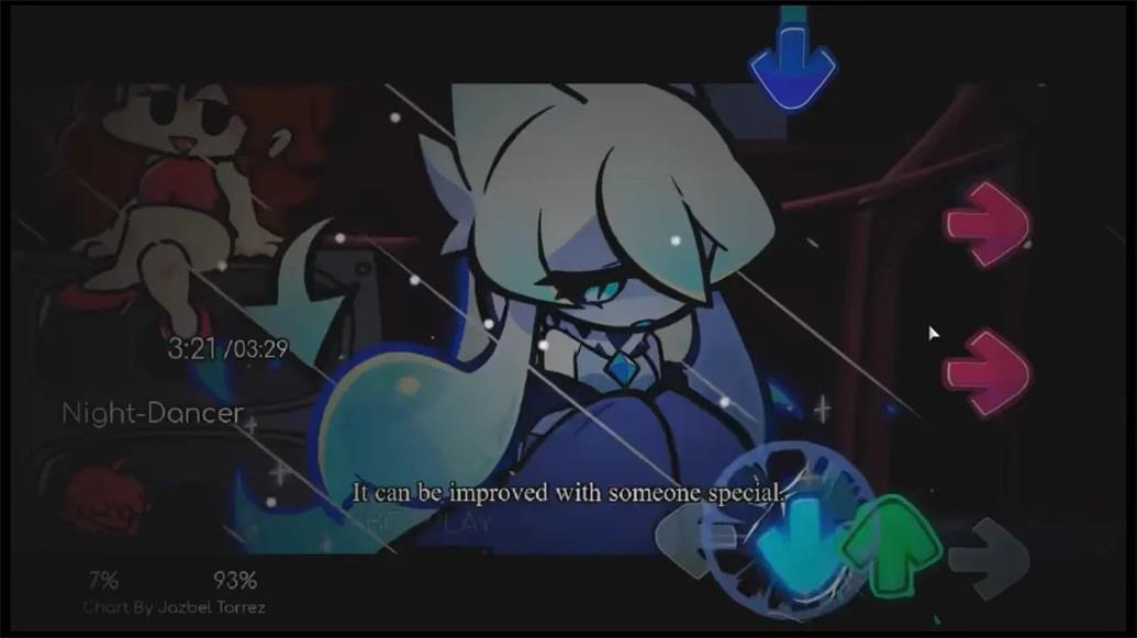 Night Dancer是一款基于Friday Night Funkin’制作的同人模组,以Night Dancer为主要曲目内容。玩法延续原作的下落箭头节奏机制,玩家需要根据音乐节奏按下对应方向键完成演奏,对反应与节奏把握有一定要求。