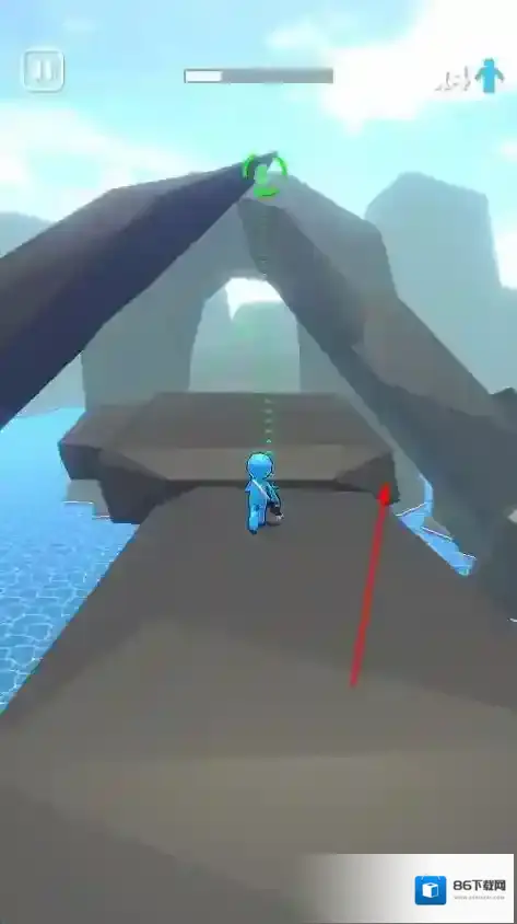 1.进入关卡后观察地形结构,点击屏幕左侧/右侧控制对应手臂抓握岩壁,长按可维持抓握状态,快速点击实现连续换手攀爬。