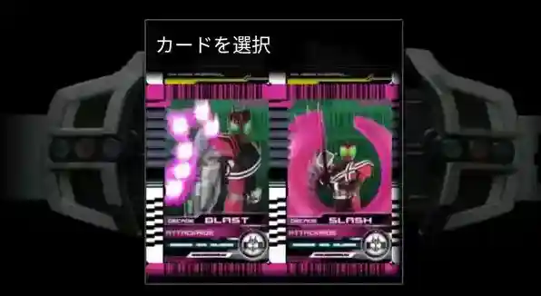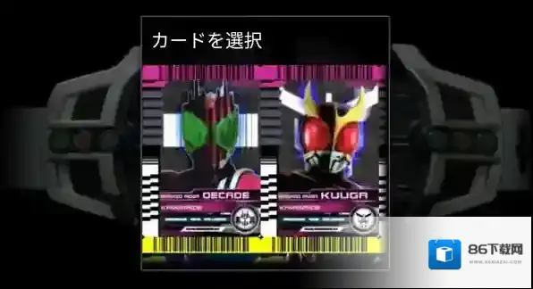 1、进入游戏后可手动操作DecaDriver腰带,两侧点击打开卡槽界面,浏览并挑选自己想要变身的假面骑士卡片。