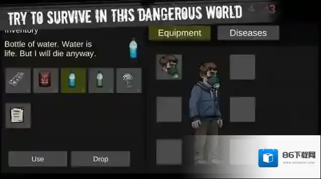 1、玩家进入游戏后首先会出现在随机生成的末日场景中,需先观察周围环境,快速搜寻附近可见的基础物资如食物、水和简易工具,为初期生存奠定基础。