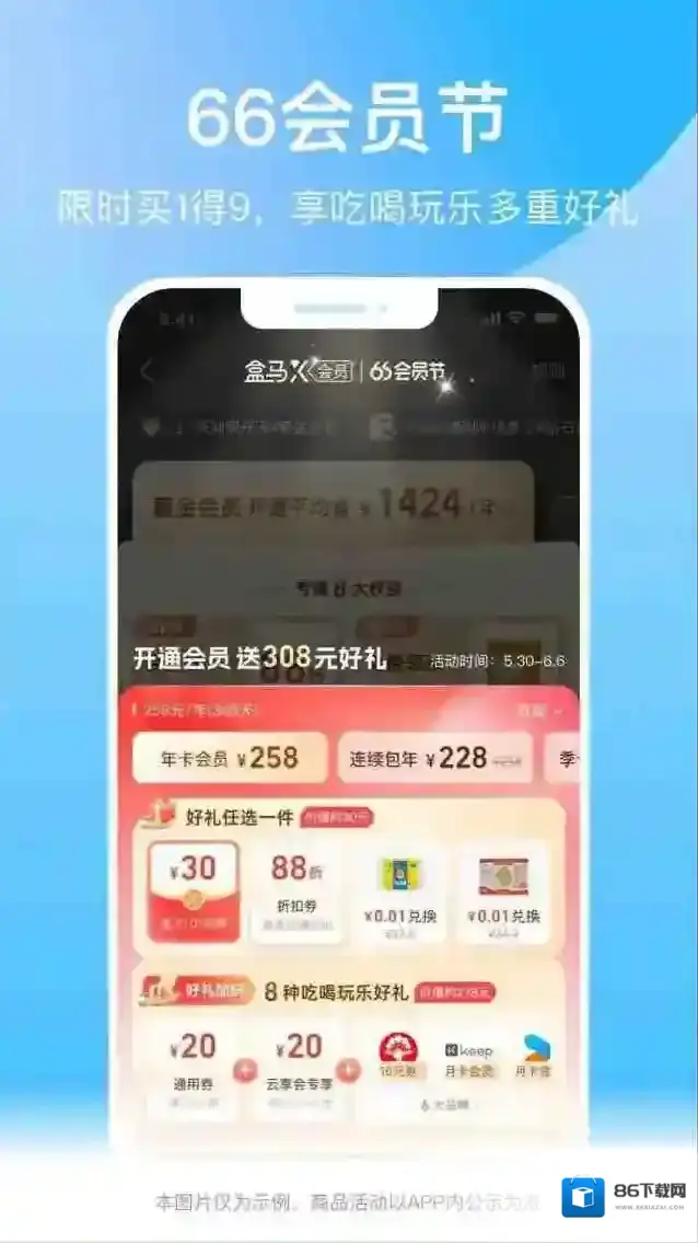 盒马,是线上线下相结合的零售超市,涵盖了各种水果蔬菜、米面粮油以及日用品等等,所有的商品都是新鲜的,立即下单很快就会送货上门,售前售中以及售后服务。实现购物无忧,将商品质量放在第一位,专业的人员严格把关,每天不定时优惠券可以抢购,足不出户就可以购买到新鲜的食材,还可以随时查看配送进度。