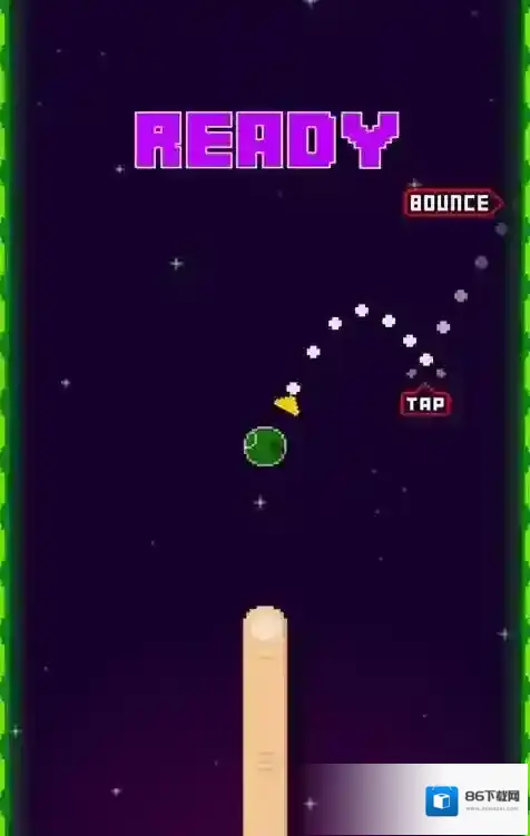 2、在【READY】界面,根据提示,准备通过点击屏幕操控绿色球弹跳,熟悉基础操作。