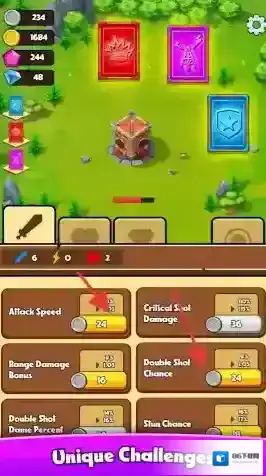 1、强化属性提升伤害:可通过强化属性对敌人造成更多伤害,属性的提升是永久生效的,玩家能根据战斗需求自由增加,这种持续成长的设定让塔的防御能力不断增强。