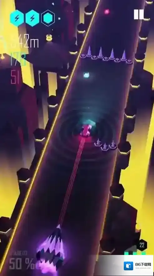 2、动态赛道变幻:赛道颜色随关卡推进实时变换,道路结构随机重组,搭配突然出现的陷阱,持续考验反应与预判能力。