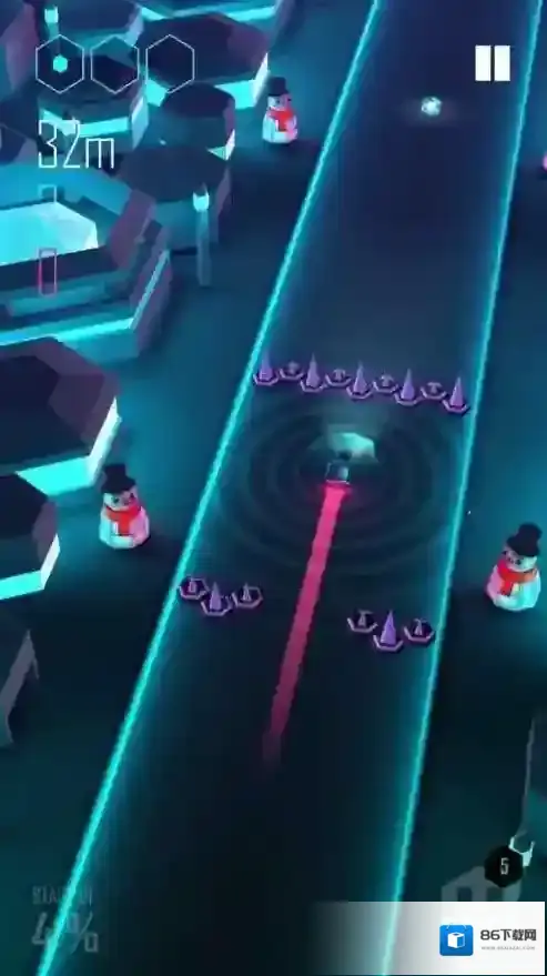 1、音乐节奏联动:赛道变化与障碍出现频率贴合背景音乐节拍,玩家需踩准节奏消除方块,打造视听一体的沉浸体验。