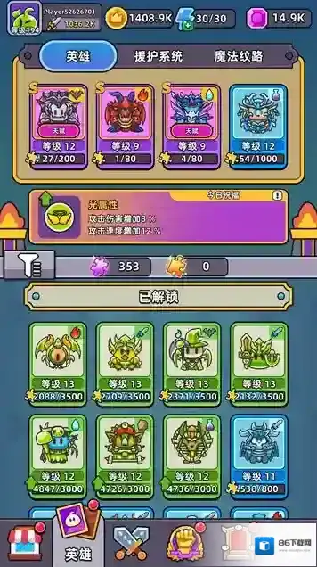3、不同英雄拥有各类技能效果,按战局灵活搭配才能在高压关卡中取胜。