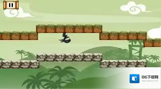 1、于水墨竹林关卡中,操控忍者施展基础跳跃,跨越首个低矮尖刺陷阱,开启闯关。