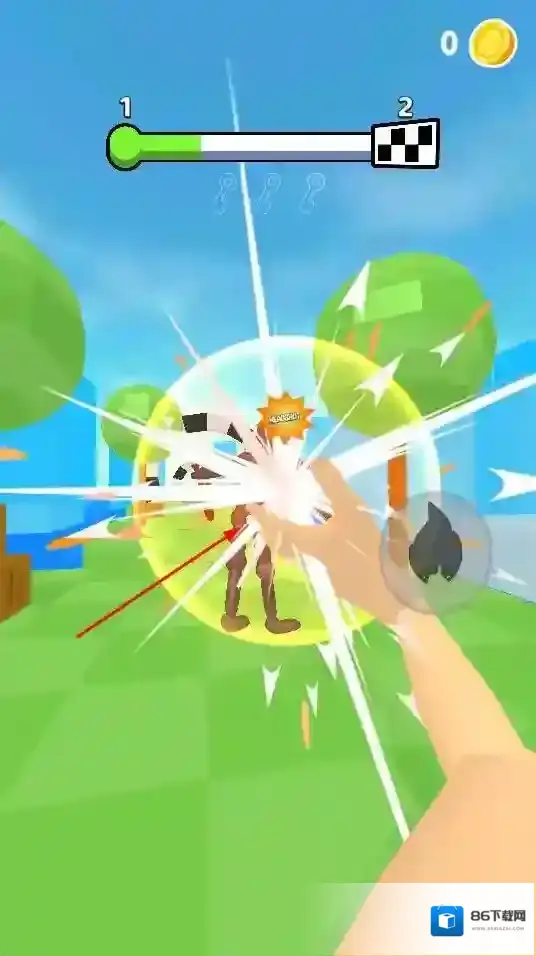 1、玩家通过拖动屏幕来操控手的动作,击打场景中的敌人。