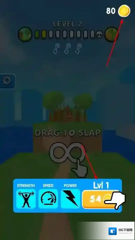 3、玩家使用收集到的金币,对角色的力量、速度、能量等属性进行升级。