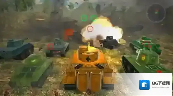 3、资源收集升级:通过战斗获取资源解锁新坦克或升级武器系统,提升炮弹威力、装甲厚度等属性,增强长期战场竞争力。