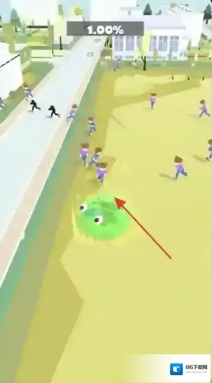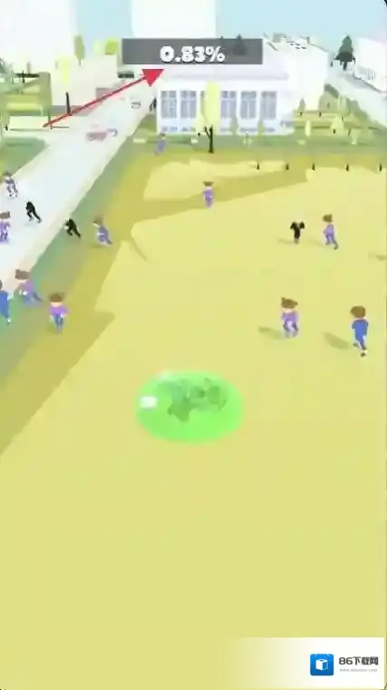 2、绿色球体碰撞人群后可将其吞噬,上方百分比数值随之增加,代表吞噬进度或积累资源。