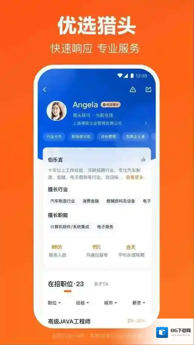 不管是找工作还是企业找人才相信大家都用过猎聘app,它上面有很多的岗位信息,彬且都是真实的,对于求职者来说,上面有很多的岗位信息、简历填写技巧以及面试技巧,帮助大家在找工作中可以更加顺利,提升你的职场竞争力,对于企业招聘者而言,可以精准筛选出公司所需要的人才,与求职者在线沟通、邀约面试。