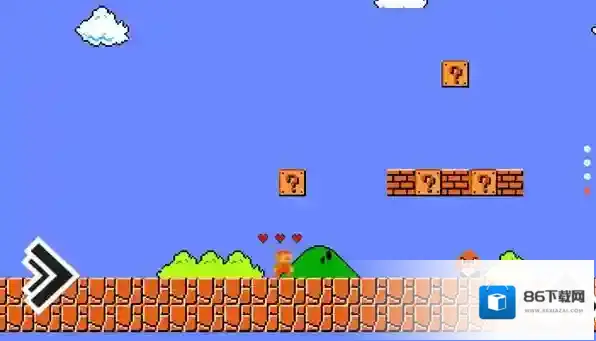 究极玛丽致敬经典的全新冒险之旅,作品在保留马里奥核心玩法的基础上,加入了车辆、宝剑等创意道具和强力BOSS战,虽然只有一个关卡,但精心设计的难度曲线充满挑战性,角色拥有三格初始生命值,通过击败敌人和收集道具可以补充血量,一旦生命归零就必须从头开始,无法存档的设定让每次尝试都充满紧张感。