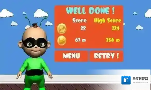 1、萌系角色设定:以婴儿作为跑酷主角,角色动作呆萌可爱,搭配童趣十足的造型,让紧张的跑酷过程增添轻松氛围,吸引玩家持续游玩。