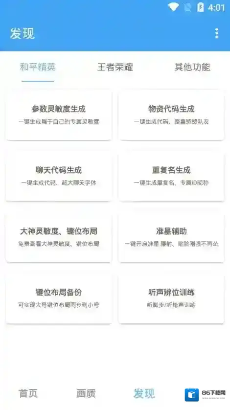 3、在吃鸡游戏的专属模块下,可以进行参数灵敏度、物资代码以及聊天代码的详细调整。