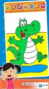 2、在卡通填色模式中(如小猫、鳄鱼图案),玩家面对已勾勒好轮廓的卡通形象,通过点击下方色彩工具。