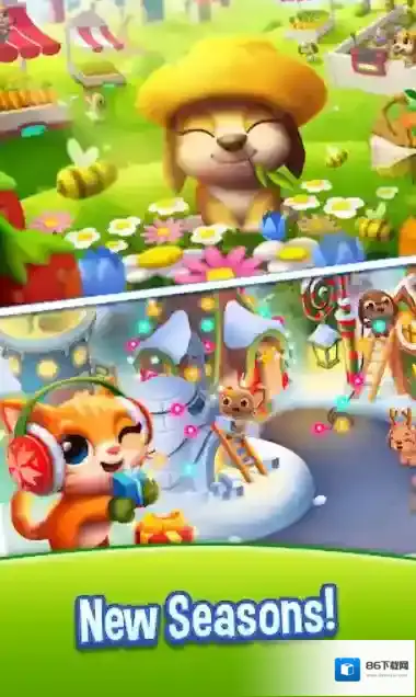 3、游戏中色彩缤纷的画面极其的吸引眼球,还有小狗、小兔兔、小猪等各种可爱动物,给你最棒的视觉体验。