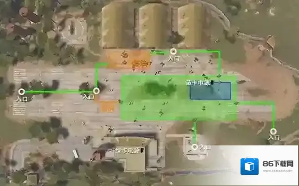 蓝色和绿色区域为隐藏补给区域,分别需用蓝卡和绿卡进入。