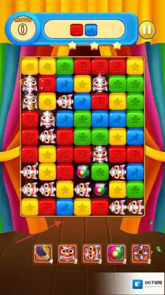 2、面对带有砖块障碍的关卡时,优先消除砖块周围的方块,利用炸弹道具直接摧毁顽固砖块,避免因方块堆积导致关卡失败。