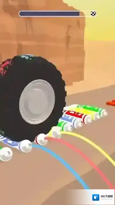 2、闯关途中,遭遇各类形状奇特的障碍物与特殊地形,需灵活调整轮胎方向与速度,巧妙碾压通过,获取更高分数。