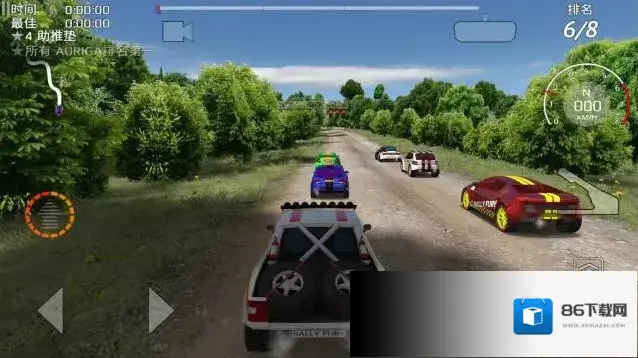 4、进入关卡后左边控制车辆的转向,右边是油门、刹车和手刹按钮,左边的圆圈按钮是氮气加速。