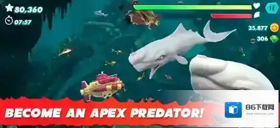 饥饿鲨进化国际服,一个很好玩的吞噬小鱼的游戏,玩家将扮演鲨鱼去吞噬其他小鱼,在饥饿鲨进化国际服里有各种各样的鲨鱼可以选择,丰富的玩法会给你不同的体验,各种各样的挑战可以自由选择完成,不断解锁更厉害的鲨鱼来体验最有趣的冒险吧。