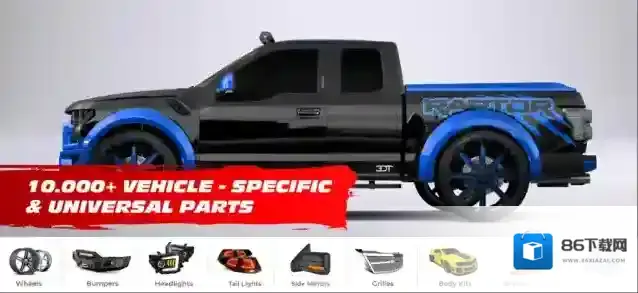 1、各种车辆可以自由去改装,更多的配件可以让你使用。