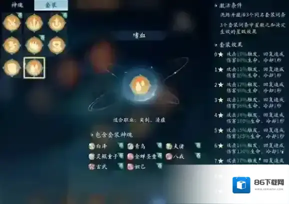 4、嗜血神魂是一块适用于防御位替补的神魂,当攻击触发时,有10%的概率回复造成伤害的一定比例生命值。