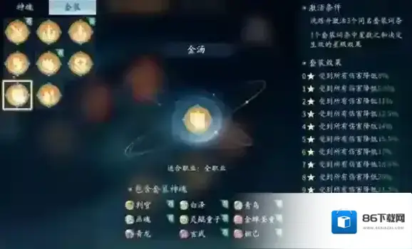 3、金汤是一块全职业通用的神魂,其效果为降低所受伤害百分比。