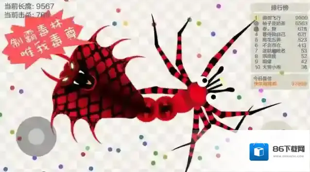 五毒大作战,休闲有趣的贪吃蛇小游戏,只不过这个游戏里的是可以使用技能的。在五毒大作战中顾名思义,就是扮演不同的昆虫来参加竞技对战,你需要吞噬更多的物品来消灭对方。通过不断让自己的身体变长来获得更多分数,围追堵截来消灭你的对手,不断消灭更多敌人来获得胜利。