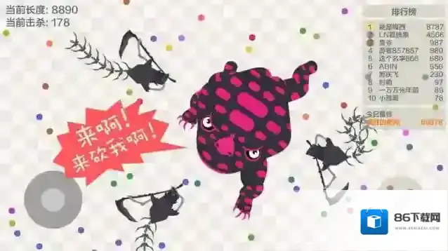 3、吃掉场景中的小球可以让你的身体变长,身体越长获得的分数越多。