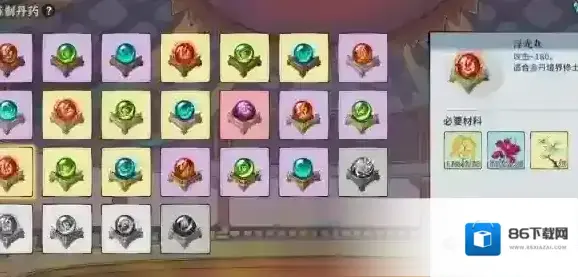 炼制每种丹药都需要特定的材料和花费一定的时间。